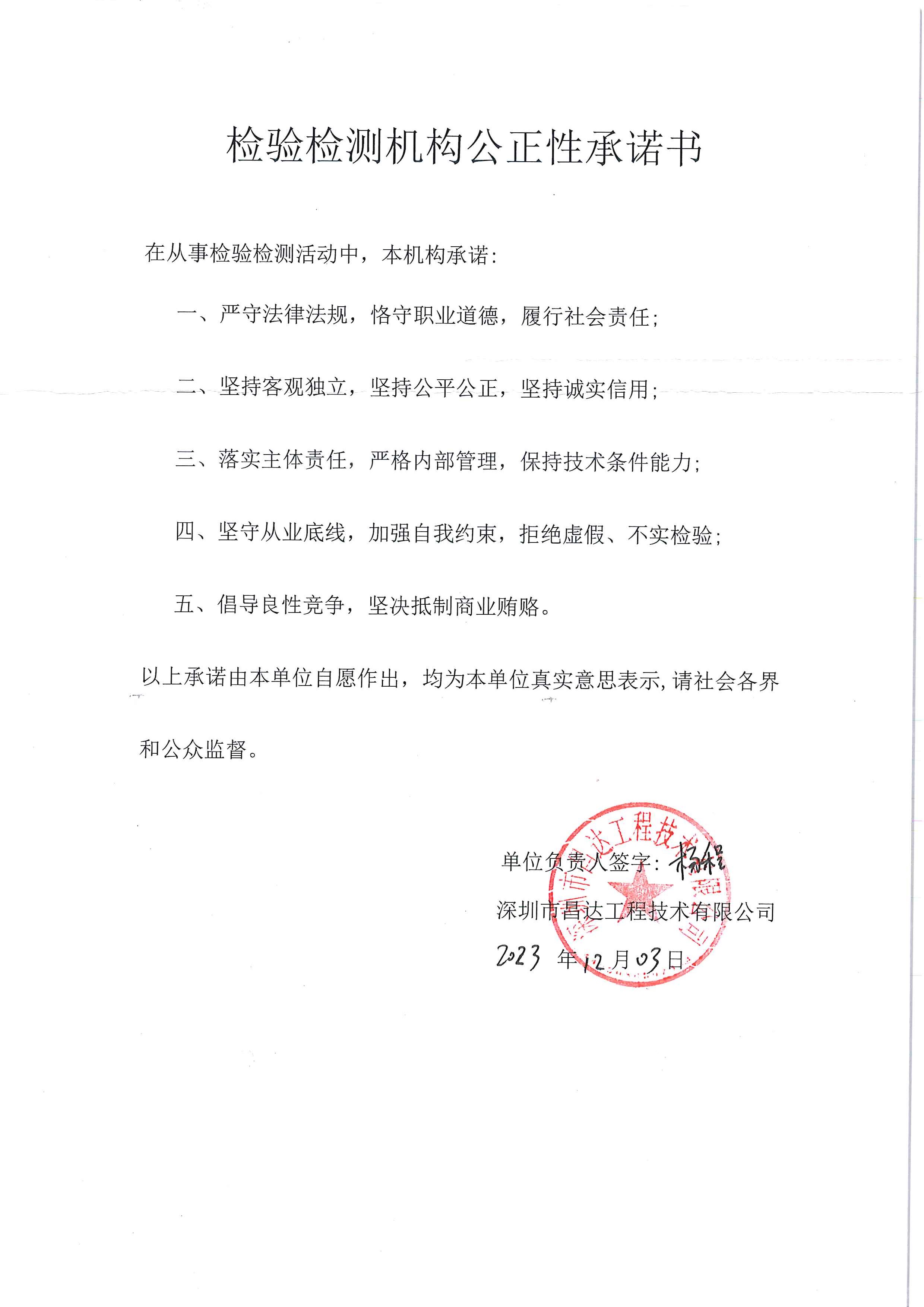 • 3、公司及其人員從事檢測活動,遵守國家相關法律法規(guī)的規(guī)定,遵循客觀獨立、公平公正、誠實信用原則,恪守職業道德,承擔社會責任。